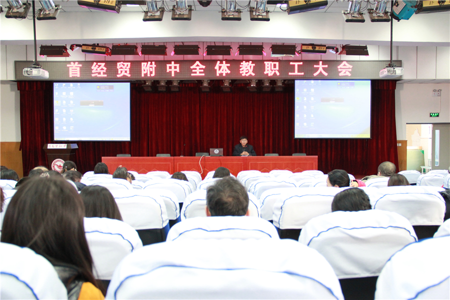 李晨辉校长最后做了总结发言,李校长首感谢全校师生一起陪伴,共同走过了2014年。展望2015年,李校长说:“进入2015年,我们有太多的期待,希望各位同仁继续发扬‘质朴、坚韧’的附中精神,使首经贸附中成为学生向往、家长满意、社会认可的优质学校。”李校长的话赢得了大家热烈的掌声。