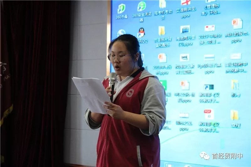 在讲座的最后,学校还安排曾薏珊同学宣读了上一届高三学姐王馨同学给即将步入高考考场的学弟学妹们的一封信,王馨同学现就读于首都经济贸易大学,她在来信中介绍了自己在大学中的生活,回顾了自己高三时的生活,以过来人的身份告诉学弟学妹们如何度过高三收获成功。学姐的来信让高三的学弟学妹们倍受感动,大家对学姐的关心纷纷报以热烈掌声。