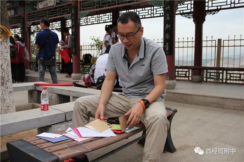 随着大部队陆续到达山顶,各班开始在山顶照毕业合影,互相赠送纪念卡,表达对老师、同学及对学校的热爱。