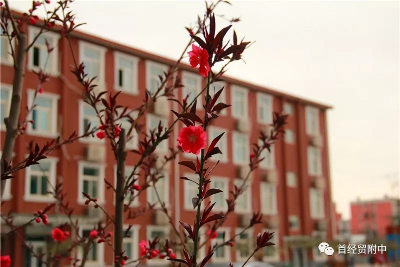 昨夜的春风带着一丝小雨毫无顾忌的吹遍了首经贸附中的各个角落,她吹绿了楼前的龙爪槐,吹绿了松柏树下一畦的青草,也吹开了附中一树树的梅花、桃花和海棠。