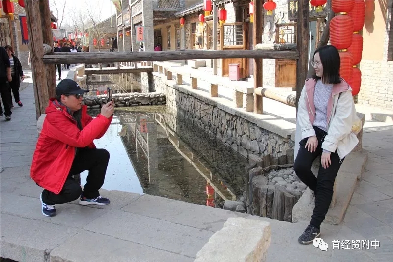到了中午,吃完午饭,老师们开始在太行水镇转悠,小镇里充满了各种各样的特色小吃,看看西洋景,喝喝摔碗酒,尝一尝当地的驴肉火烧、牛肉罩饼,品一品手工制作的锅盔、贵妃糕、脆香藕盒、农家小包……这里还有各种各样的农产品作坊,比如面坊、油坊、粉条坊、辣子坊、酱菜坊、酒坊、酸奶坊、醋坊、醪糟坊、豆腐坊、糕点坊等,每一家都很古香古色,每个都可以尝一尝,各种特色的小吃刺激着你的听觉、视觉和味觉,这时让你最后悔的就是中午饭吃多了,大家开始埋怨起来,埋怨孟主席不该安排中午饭,现在看着丰盛的小吃,哈拉子直流,吃不下了……